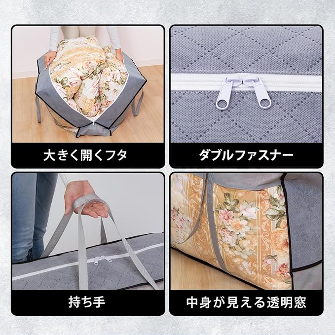 商品名:珪藻土入り消臭羽毛布団収納袋 持ち手付き