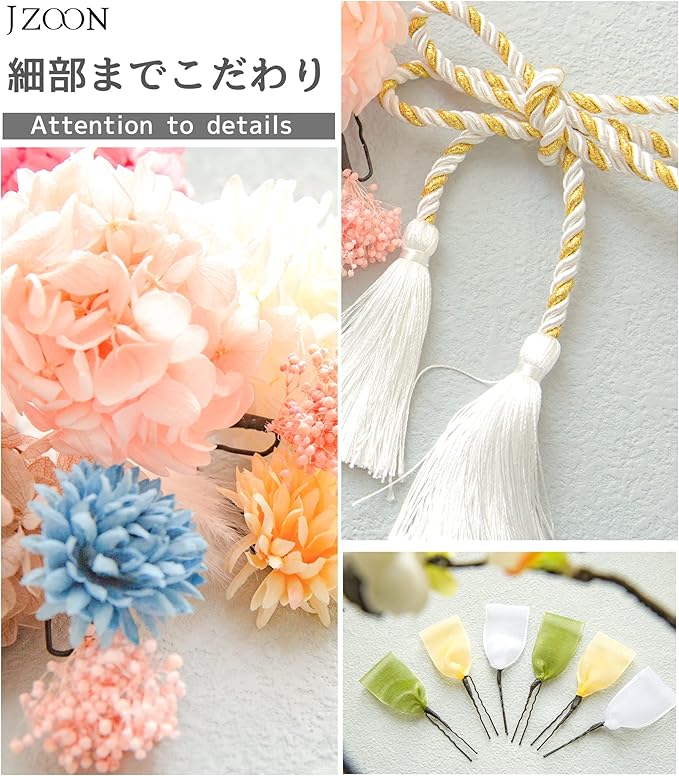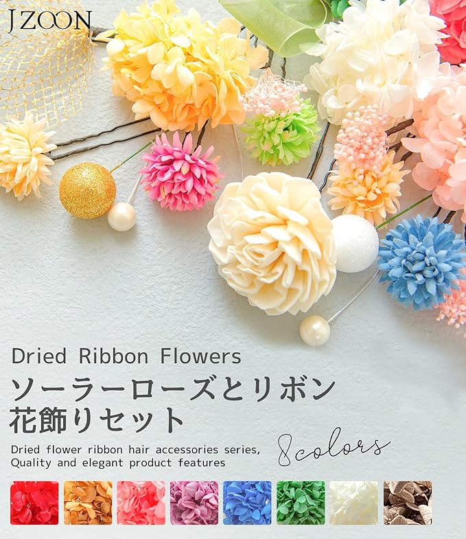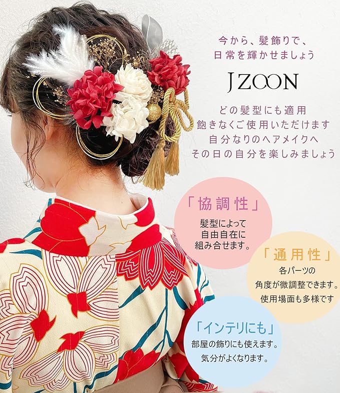 [JZOON] 9色展開 成人式 髪飾り 水引 振袖 着物 卒業式 七五三 浴衣 袴 結婚式 ドライフラワー 造花飾り 和玉 ヘアアクセサリー かすみ草 和装 造花 リボン 羽 手作り T5033