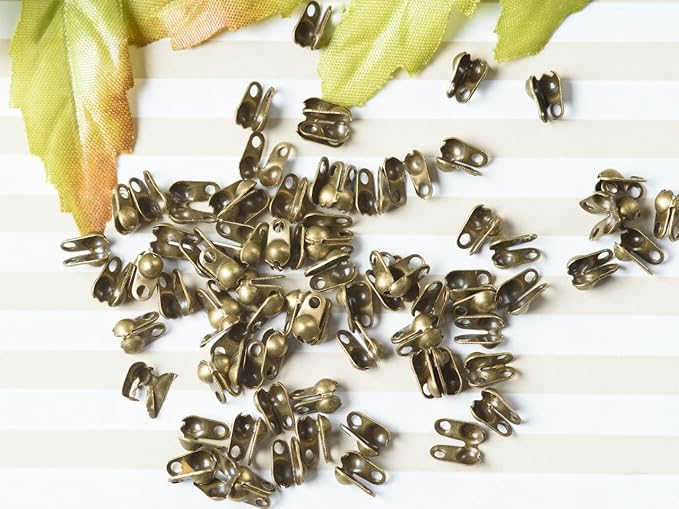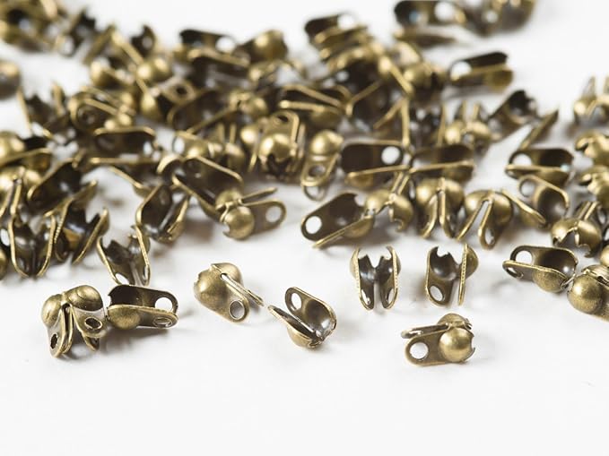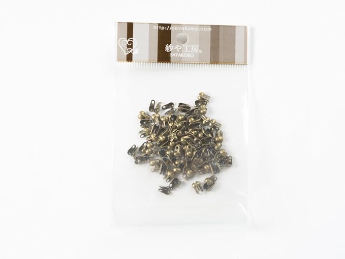 紗や工房 エンドパーツ【Vカップ(ボール径:約2.4mm用) 金古美 100個】ボールチェーン用 留め金具 端処理 通し穴