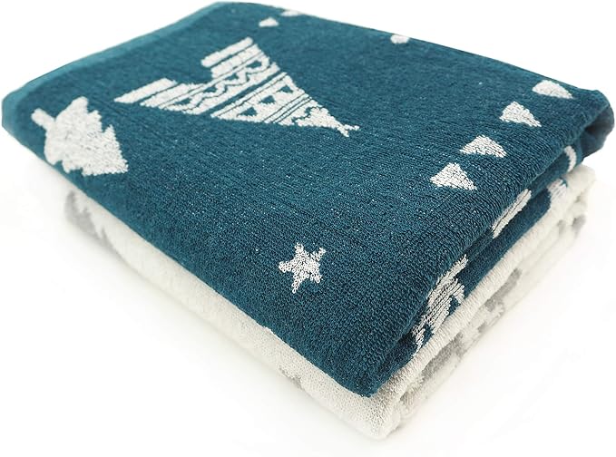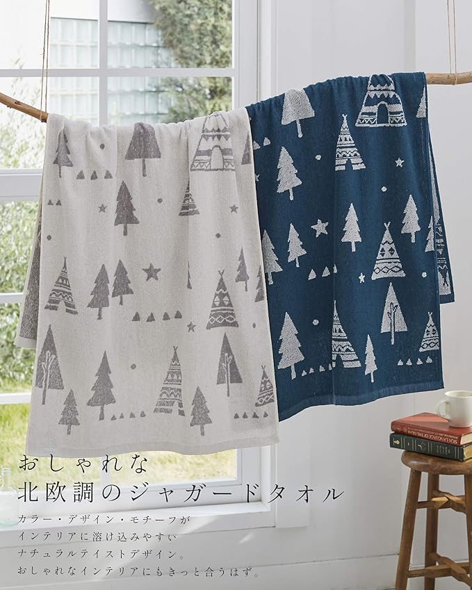 Kosugizen バスタオル 北欧調ジャガード ツリー 2色各1枚入 60 120㎝ 北欧風モチーフ 薄手タイプ 2枚セット SV-6514-2