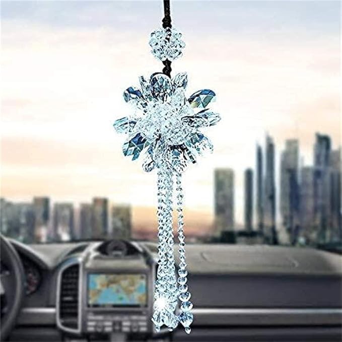 車両用ペンダントミラー用デコレーション 車内 水晶 ハンギングオーナメント チャーム 装飾 クリスタル アクセサリー バッグミラー ペンダント (ホワイト)