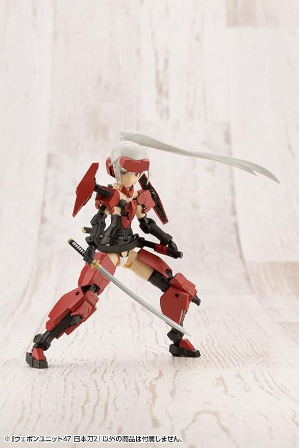 人気のウェポンユニットシリーズから日本刀のVer.2が登場。フレームアームズ・ガールや創彩少女庭園などキャラクタープラモのスケール感に合わせサイズを小さく、さらにディテールアップ!刀身部分を塗装済みにすることで組み立てただけでも見栄えが良くなりました。