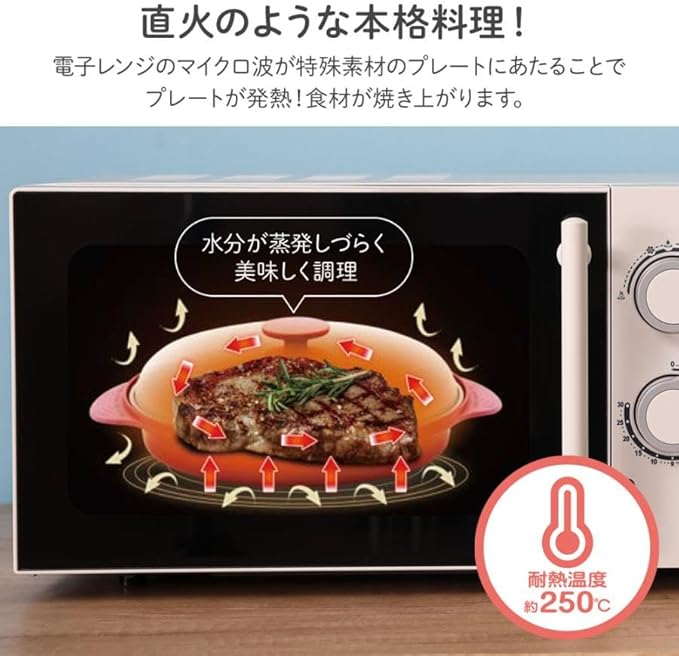電子レンジで直火のような調理ができ、においや油汚れなど面倒な後片付けは不要です。