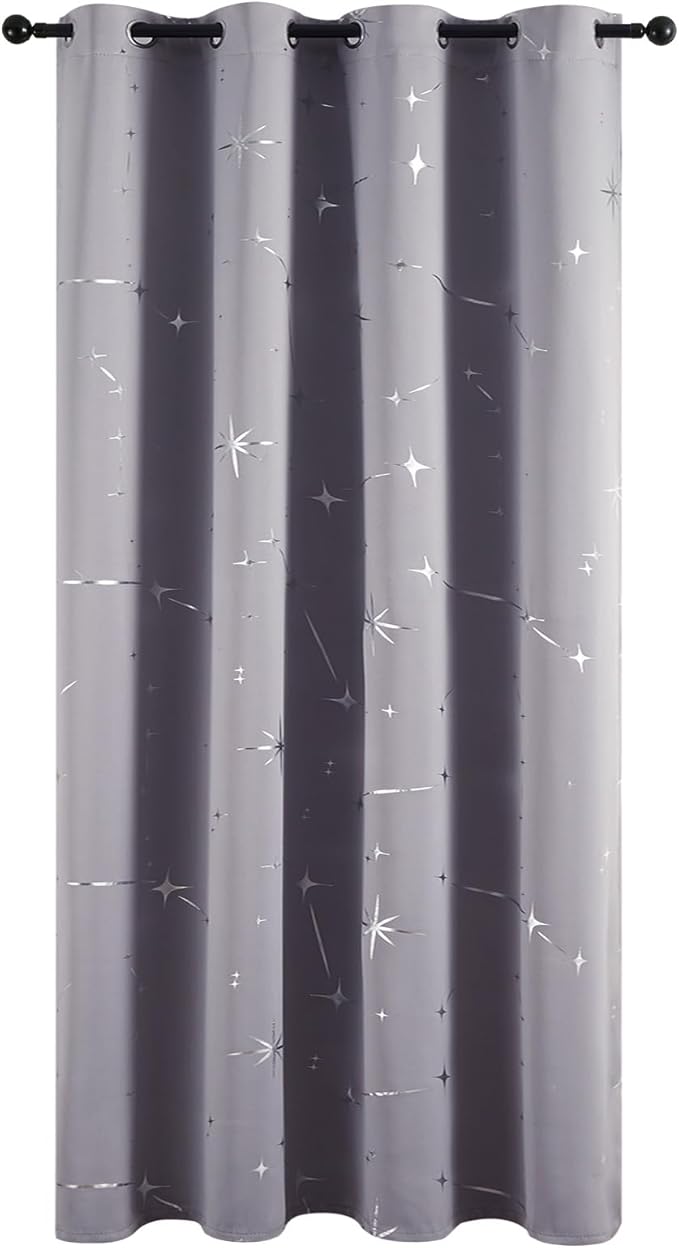 Topfinel のれん 間仕切りカーテン 断熱 カーテン 遮光 星柄 箔プリント 幅100cm 丈180cm 1枚入り グレー ハトメ型 突っ張り棒 カーテン 仕切りカーテン ドアカーテン 目隠し 玄関 キッチン リビング