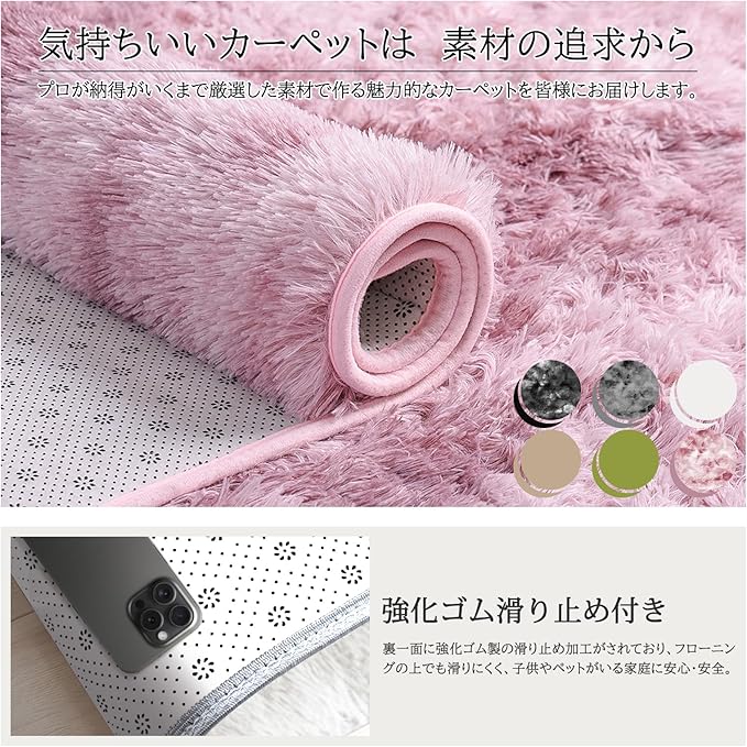 Beddiny カーペット ラグ ラグマット 洗えるラグ【中層:極厚30D高密度ウレタン 独自技術の抗菌防臭加工】絨毯 オールシーズン快適に使用 滑り止め付き 高密度シャギーラグ ピンク パープル ホワイト 120 160cm