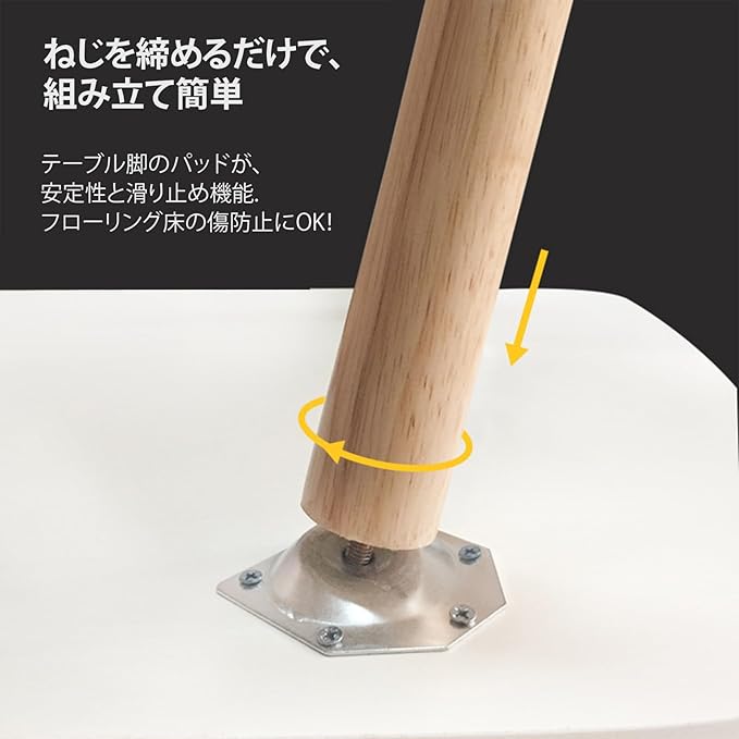 天板の角も脚の縁も面取り加工ですので、お子様のいるご家庭にも安心。毎日使うものだからこそ、細かな安全面にもこだわらっていて、当たっても痛くないように丁寧に仕上げました。