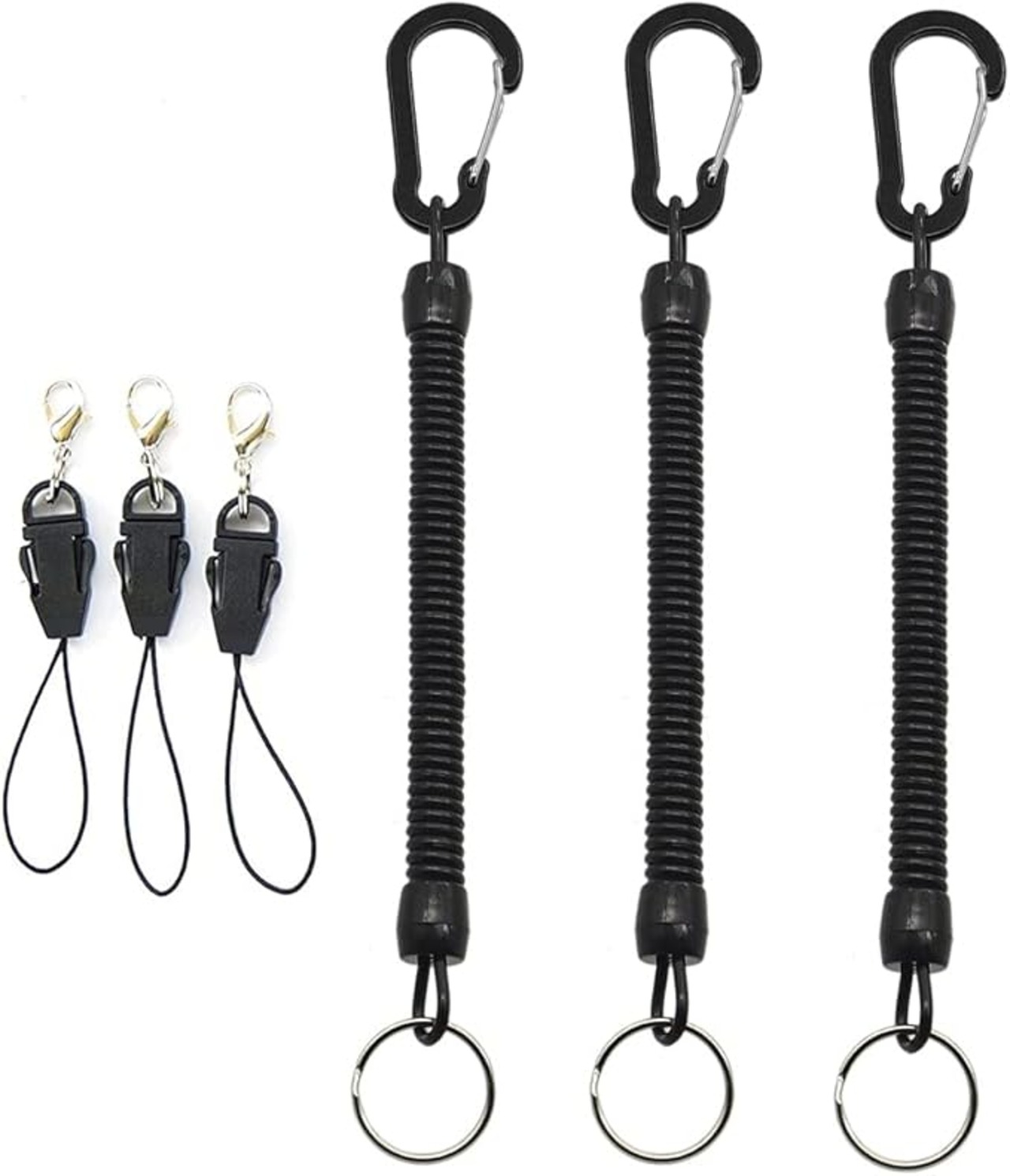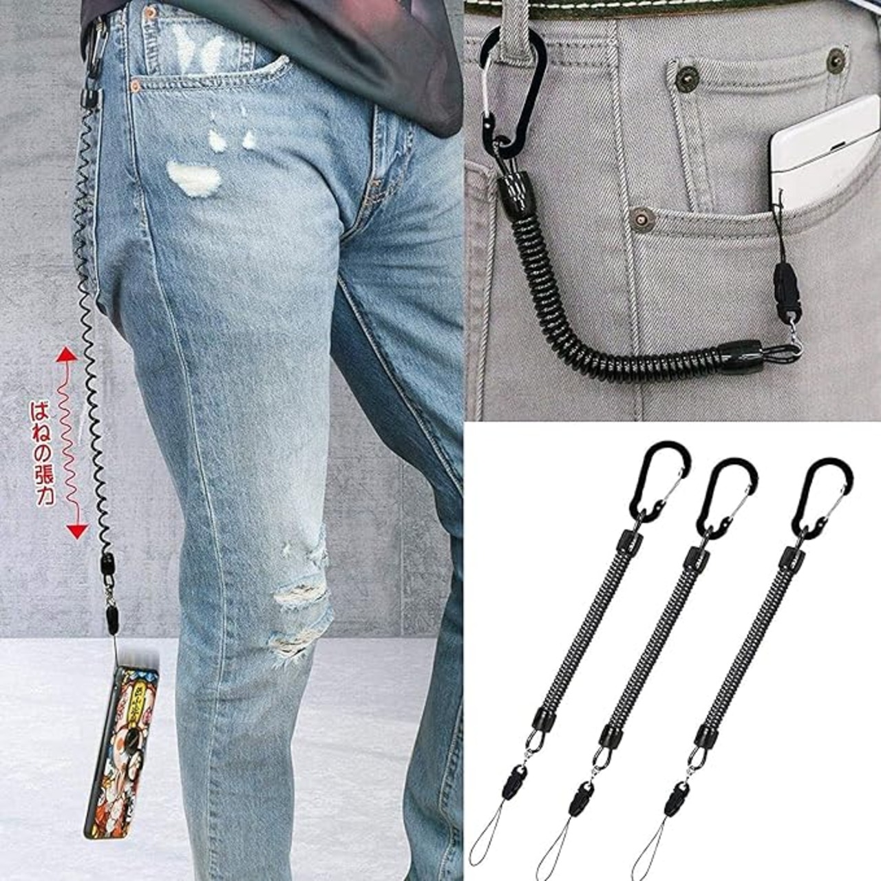 材質:カラビナはアルミ製 カールコードストラップはTPU材質,カニカン:亜鉛合金 チェイン+リング:鉄, 優れたTPU材質を使用しているため、断線や劣化防止に強い、長期間使用できます.何度も引いても回復スピードには問題ありません.
