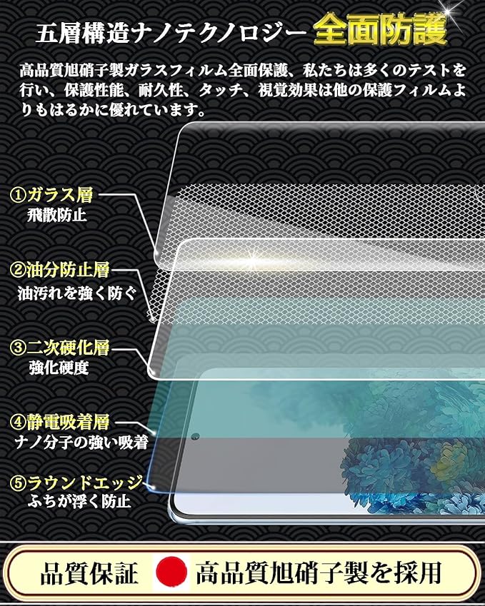 対応 Galaxy S20 ガラスフィルム 全面保護 SCG01 / SC-51A 強化ガラス ギャラクシーS20 液晶保護フィルム 指紋認証対応 日本製旭硝子製 硬度9H 飛散防止 気泡防止 撥水撥油 高透過率 自動吸着 衝撃吸収 スクラッチ防止 干渉しない【1枚入り】