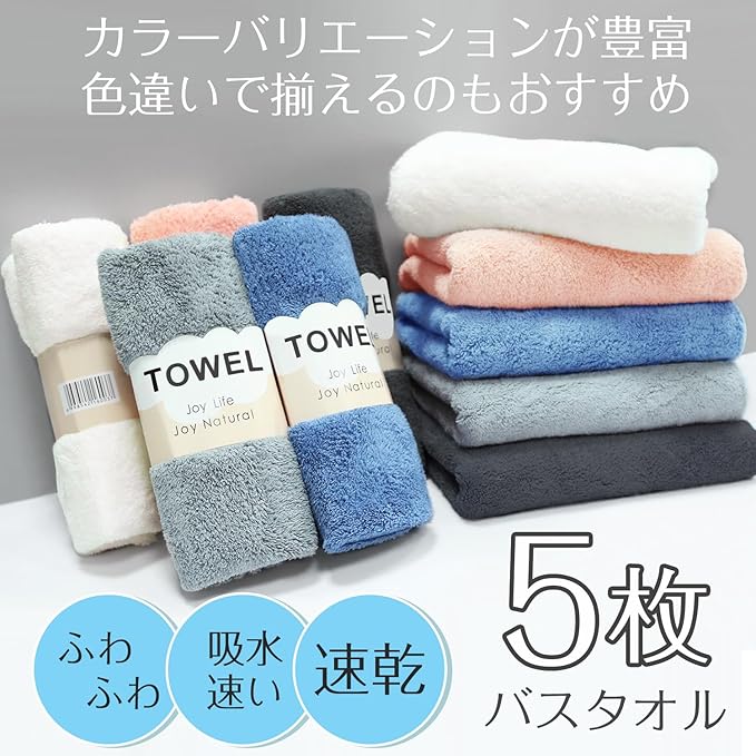 【バスタオル 5枚セット】材質:マイクロファイバー ・サイズ:約60 120cm ・カラー:、ブルー 内容:5枚セット・用途:バスタオル、プールタオル、ひざ掛けなど