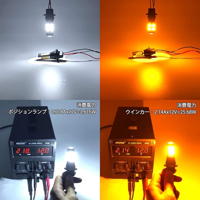 『2色切替』本製品は、ウインカーランプにスモールランプの役割を持たすことが出来ます。1つのLEDバルブがアンバーやホワイトに発光します。通常時:ホワイト(スモール点灯)。ウィンカーON: ホワイトが消灯し、アンバーが点灯する。ウィンカーOFF: アンバーが消灯し、ホワイトに戻ります。