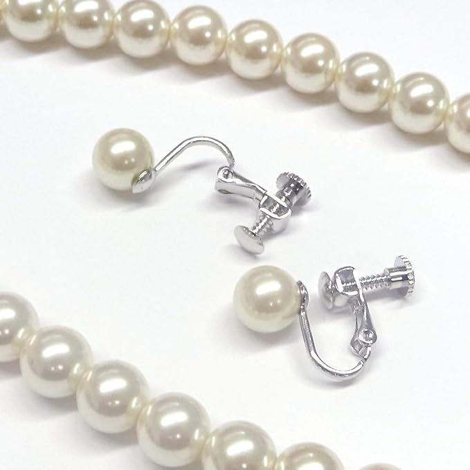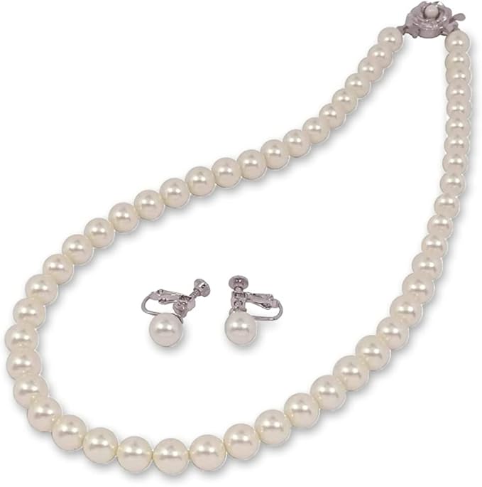 [あなたと私の宝石箱] フォーマル パール 8ミリ 16インチ (ネックレス&イヤリング ホワイト カラー セット)