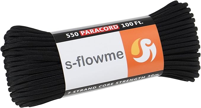 スフローム(s-flowme) パラコード 7芯 4mm x 30m 全60色 耐荷重 250kg クラフト パラコード アクセサリー アウトドア キャンプ テント タープ 用固定用紐 ガイロープ ロープ A01 ブラック