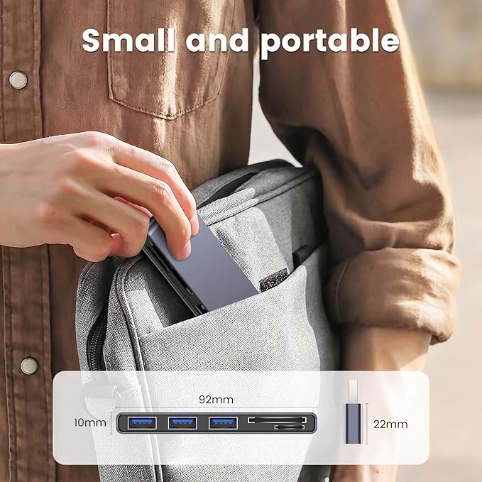 【USBマルチポートアダプタ】USB 3.0ハブマルチポートアダプタです。このアダプタは、コンピュータに3つのUSB AポートとSD/TFカードリーダーを割り当てることができます。コンピュータ上のUSBポート不足の問題を豊富にし、カードリーダーの機能を追加します。良質なアルミニウム合金で作られており、コンパクトなデザインで、持ち歩くことができます。カードリーダーのデータ転送を安定させるために高品質のOTGチップを使用しています。