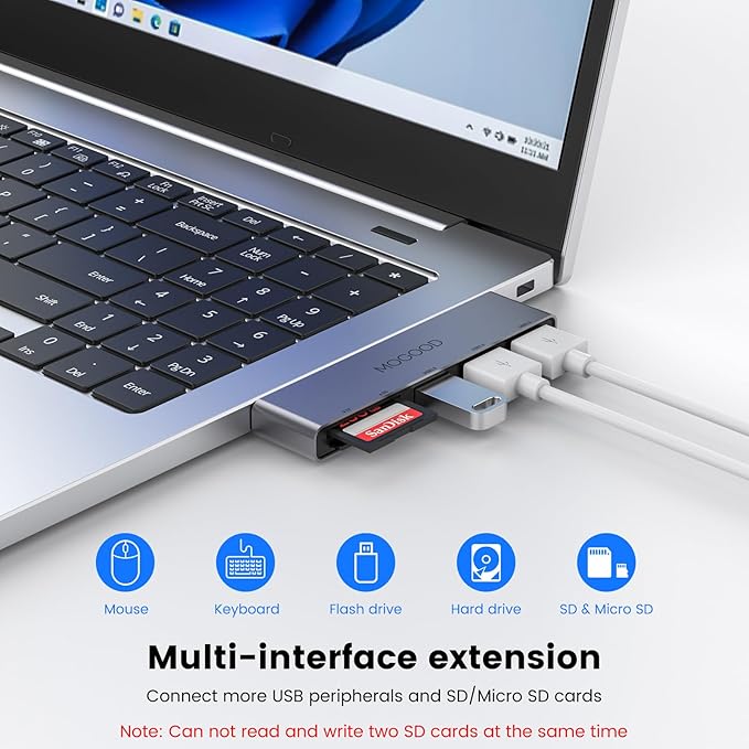 MOGOOD USBハブ マルチポートUSBアダプタ 5 in 1 USBハブ 1 USB 3.0、2 USB 2.0、SD/TFカードリーダー、互換PCノートパソコン、デスクトップ、MAC、Macbook、ノートパソコン、PS 4、Xbox、Wii