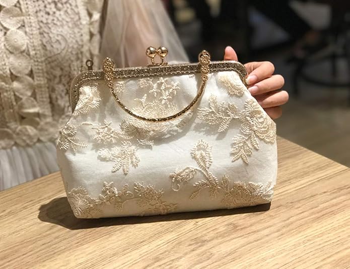 [C-astle]クラッチバック 結婚式 大きめ レトロ レース 謝恩会 入学・卒業式 ショルダーバック パーティー 可愛い 麻 手つくり ゴールド2