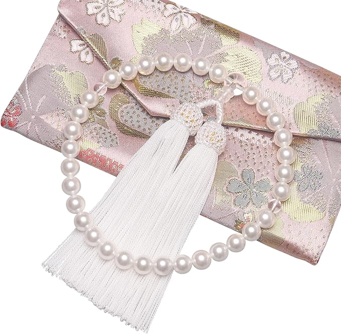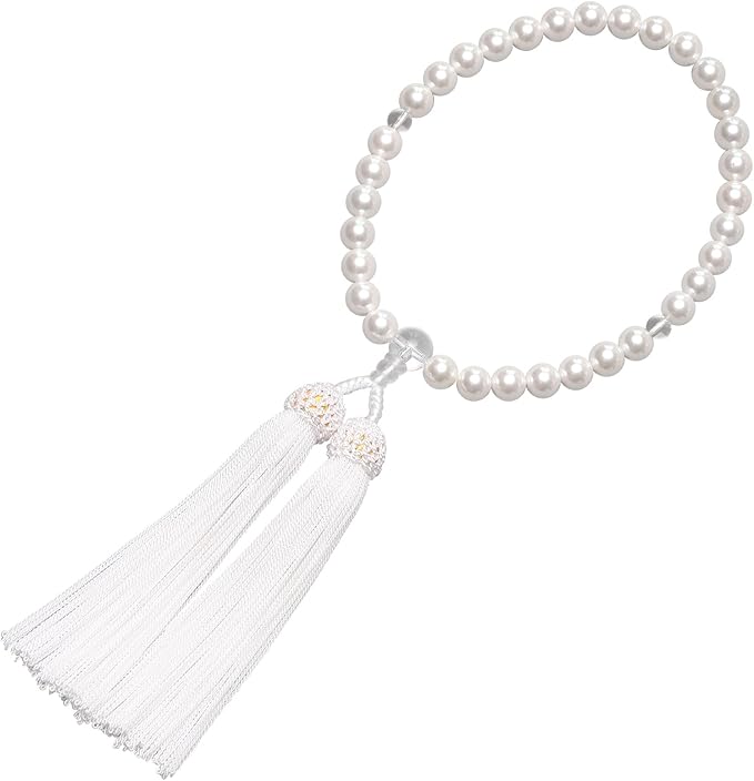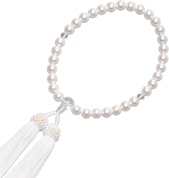通雲念珠屋 数珠 女性用 本水晶 星月菩提樹 念珠 葬式 葬儀 お通夜 略式 じゅず 数珠袋付き すべての宗派で使える (貝パール/白)
