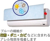 ●人工酵素による消臭・抗菌防臭繊維「アレルキャッチャー」が、ハウスダストの中のアレル物質を吸着し分解するエアコン用フィルター