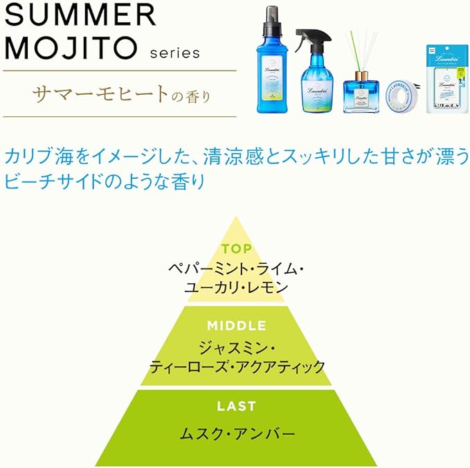 自然で心地よい香り立ちのルームディフューザー。リビングや玄関、寝室などに置いて、ランドリンだけの上質な香りをお楽しみください。数量限定、サマーモヒートの香り。カリブ海をイメージした、清涼感とスッキリした甘さが漂うビーチサイドのような香りです。