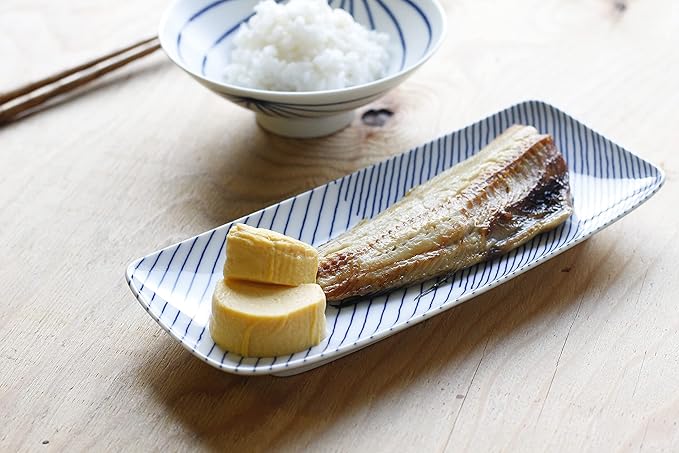 「重ね縞」シリーズは四辺に向かって緩やかに反った形が特徴のモダンな角皿です。 凛とした日本的な品を備えながらもカジュアルさがあり、和洋を問わず様々な料理を引き立てます。ペン画タッチのブルーの縞模様は焼き物伝統の色合いとシンプルモダンなアレンジがさわやかです。1984年から販売のロングセラーアイテム。