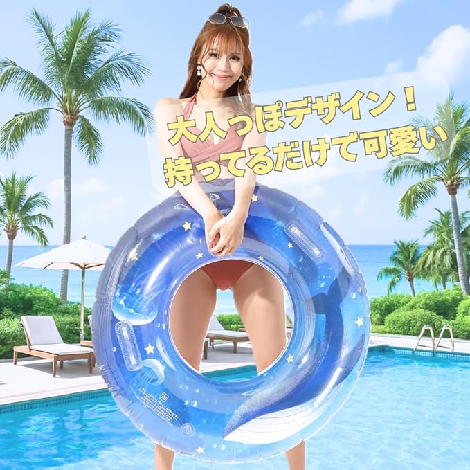 【限定商品】浮き輪 100cm 取っ手付き 大人 クジラ かわいい デザイン スイミング キラキラ プール インスタ映え SNS フロート 海水浴 海 プール ビーチ 水泳 目立つ 夏休み