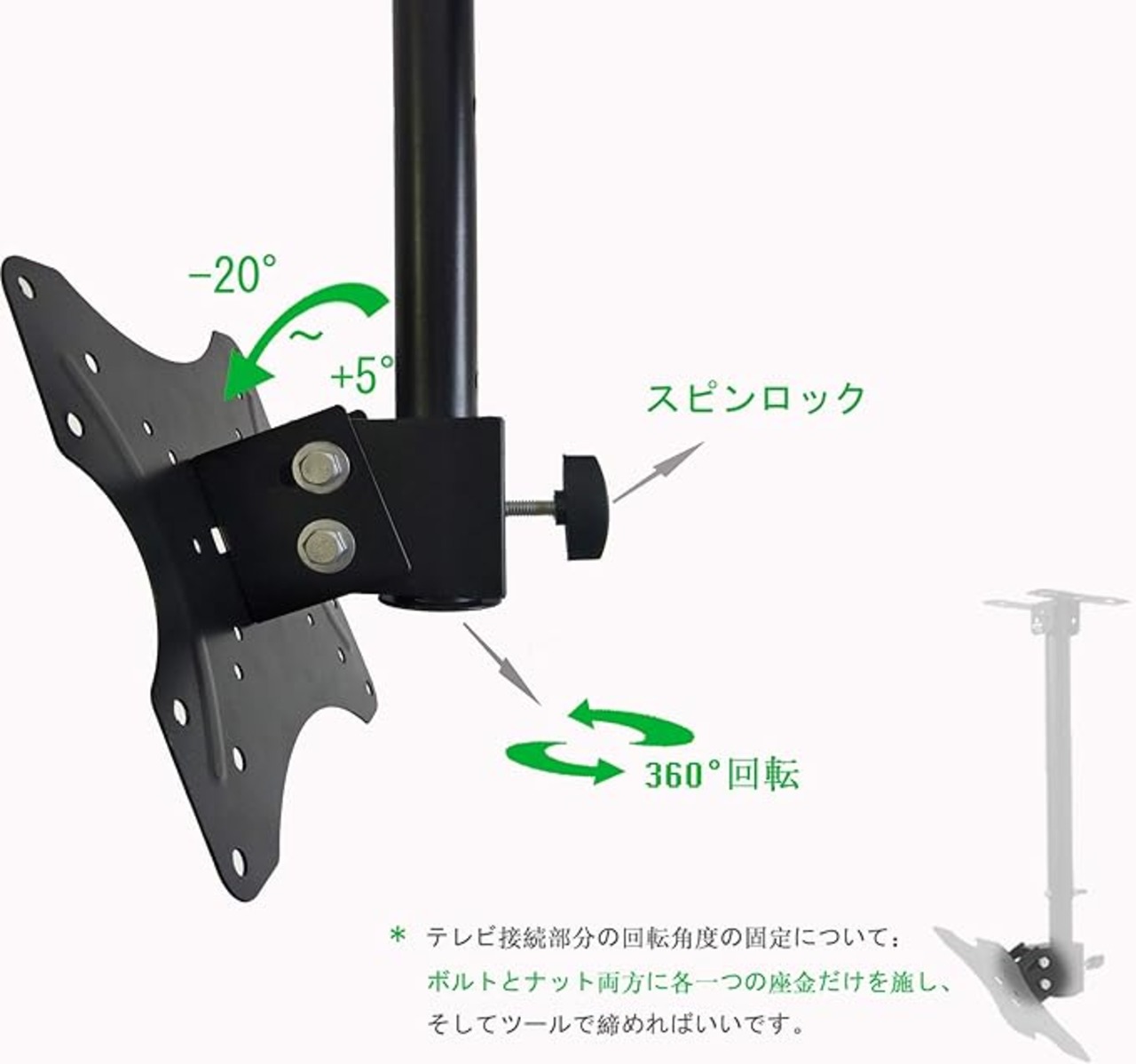 mvpmounts TV Top Hanging Bracket, TV Ceiling Hanging Bracket, 14-42 Inches, 360 Rotation, Left/Right and Bottom Angle, Pole Maximum 34.6 inches (880 mm), Up to 34.6 inches (880 mm), Load Capacity