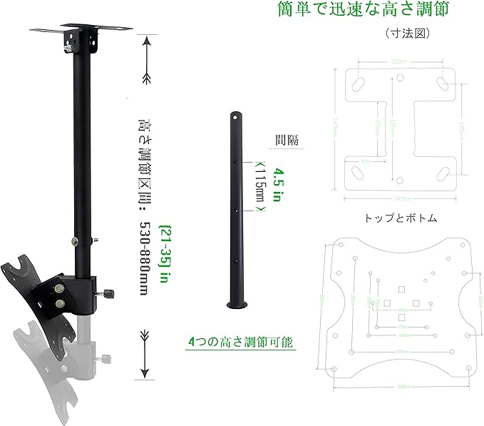 丈夫し、取り付けやすい。配線はパイプの中に収納することができます、テレビを吊るしてお部屋スッキリ