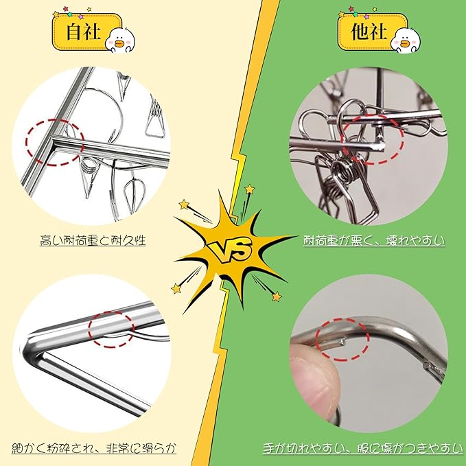 【高品質な素材】:フレームからピンチまですべてが頑丈なステンレス鋼100%製の洗濯物干しハンガーです。オールステンレス製のピンチハンガーですので、丈夫で錆に強く、劣化しにくく、長持ちします 。雨や日光に強い、室外での使用に最適です。
