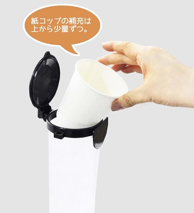 本体に紙コップ(別売)をセットしボタンを押すだけで1個ずつ取り出せます