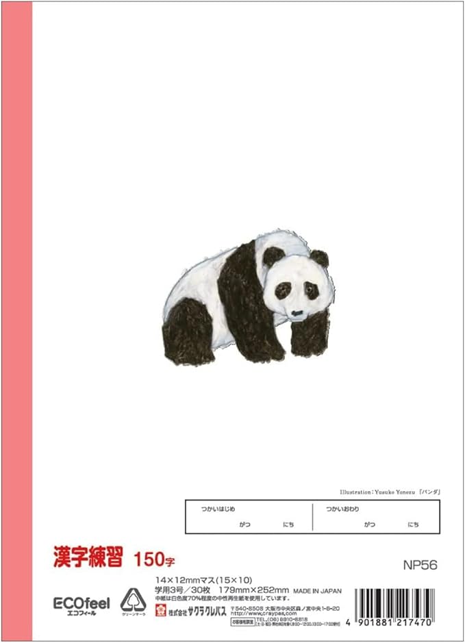 サクラクレパス 学習帳 漢字練習 150字 B5 米津祐介 デザイン パンダ 3冊 NP56(3)