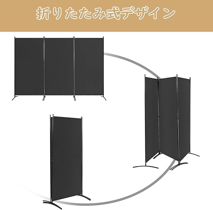 Costway パーテーション 間仕切り 高さ173cm 幅220cm 布タイプ 目隠し スクリーン 屏風 折りたたみ 衝立 おしゃれ 軽量 コンパクト収納 オフィス 事務所 クリニック (3連-幅260cm-black)