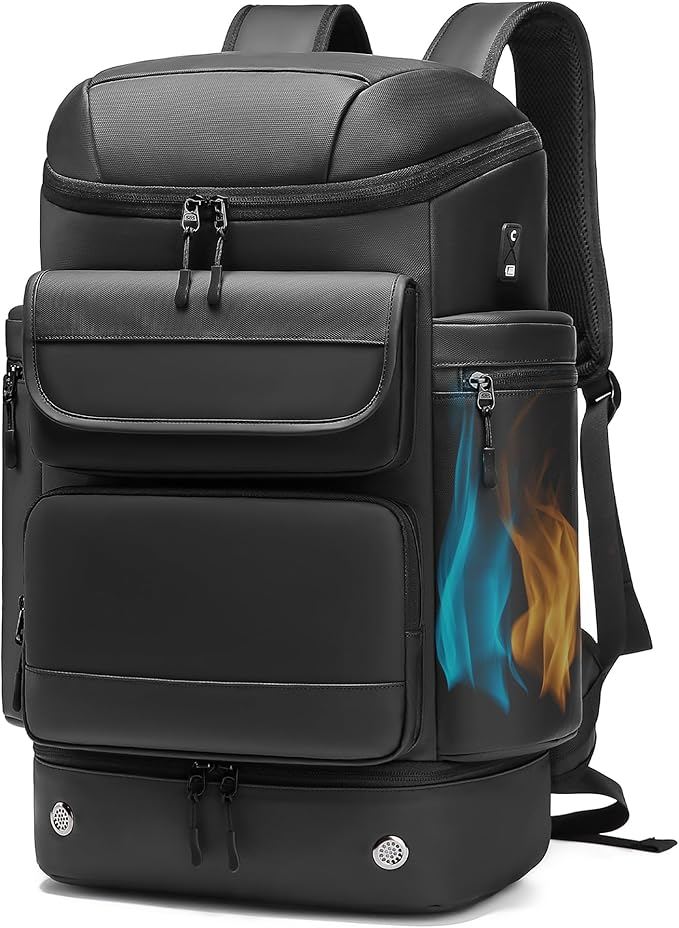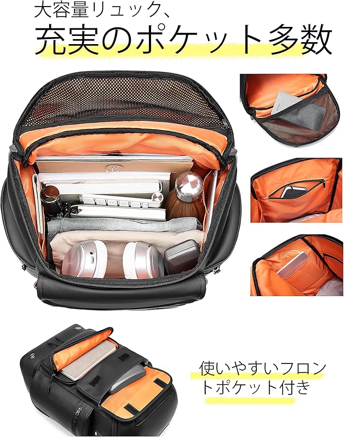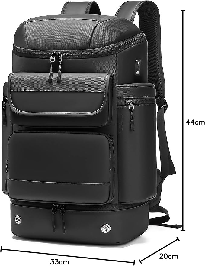 【多機能ポケット&改良されたUSBポート搭載】リュックは17個ポケットが付き、物を分けてスッキリ収納できます;特に靴収納ポケット、乾湿分離ポケット、保冷ポケット、背面ポケットを設け、出張や旅行、ジムにおすすめのモデルです。また、改良されたUSB充電ポートで、背負ったままスマホに充電も可能、ヘッドセットで音楽、通話も可能です