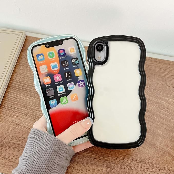 UEEBAI 対応 iPhone XR 用の ケース ソフト TPU カバー 可愛い おしゃれケース 透明 ウェーブ デザイン スマホケース ワイヤレス充電対応 軽量 薄型 耐衝撃 人気 波型 バンパー スマホケース - ブラック