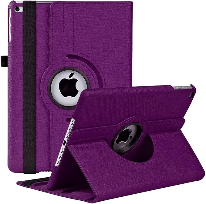 JXCX iPad 9.7 2018/2017ケース 新型(Newモデル)/iPad Air/iPad Air2カバー iPad 9.7インチ(第6、5世代)軽量 手帳型 360度回転スタンド オートスリープ機能 3段階調節可能 固定バンド 脱落防止耐衝撃 耐久性 おしゃれデニム生地 (スミレ色)