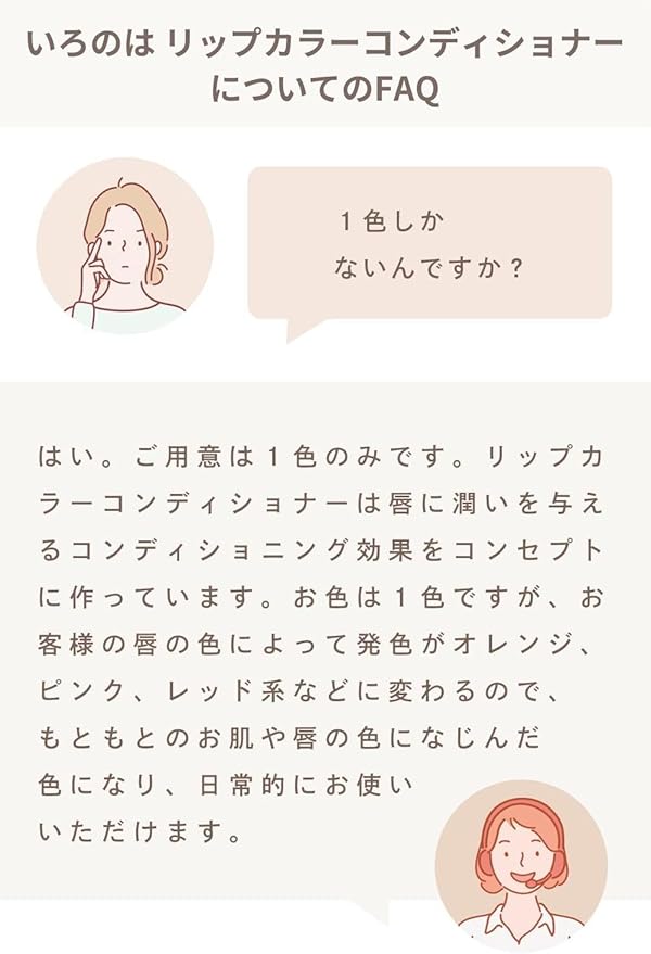 【カラー&潤いコンディショニング機能を持ったリップカラー】唇に潤いを与え、くすみもカバーする色味、軽い伸びでツヤ感があり、持続性のある保湿力が特長です。 唇の色によって発色がオレンジ、ピンク、レッド系などに変わるので、もともとのお肌や唇の色になじんだ色に。ブラウンベースが唇のくすみをカバーし、潤いが持続しツヤを出してくれるので、リップクリームとしても日常的にお使いいただけます。