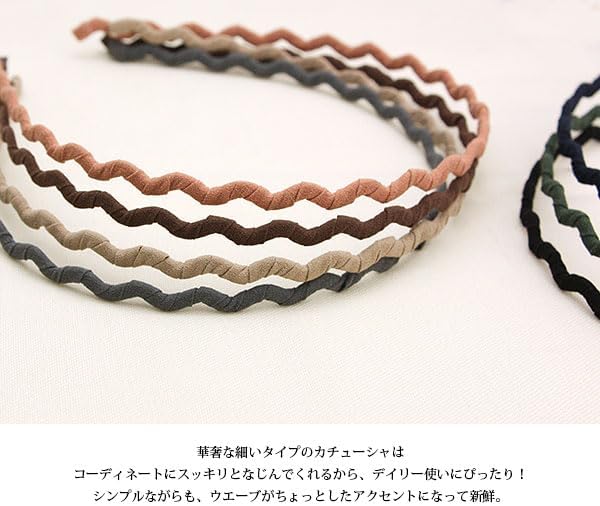 シンプルながらも印象的なウェーブフォルムが、髪に自然なニュアンスを添えるカチューシャ。主張しすぎず、でも埋もれない。日常に溶け込みながら、ふとした瞬間に「素敵」と思わせるデザインです。