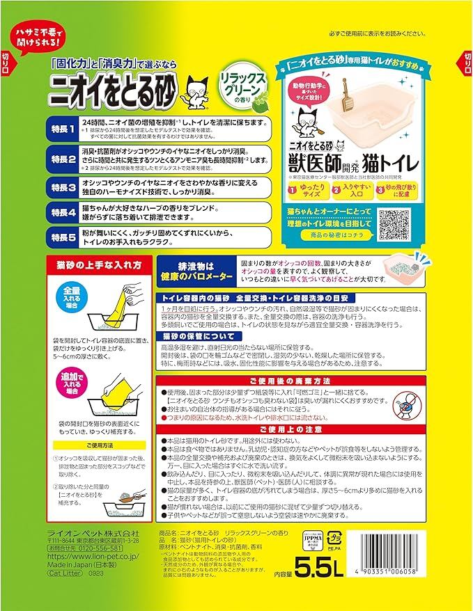 【限定商品】 ニオイをとる砂 猫砂 リラックスグリーンの香り リラックスグリーン 5.5L 4袋 (ケース販売)