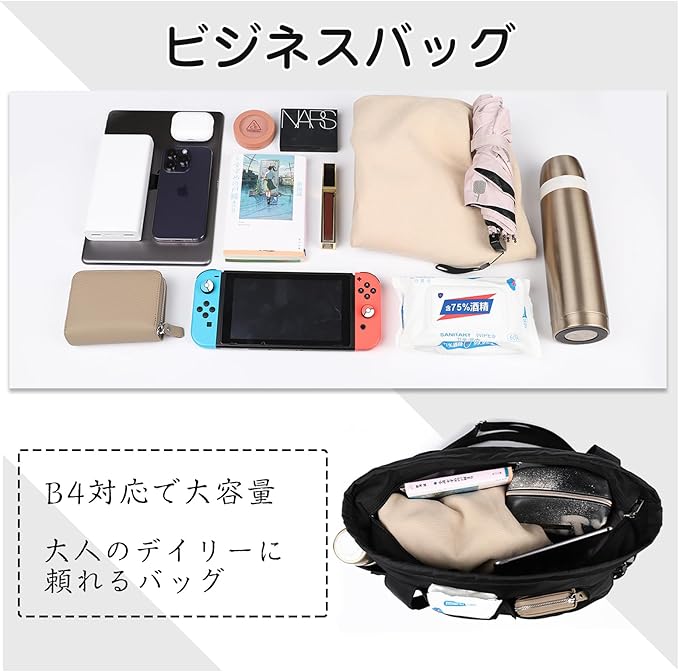 【マルチファンクショントートバッグ 】手持ちと肩がけ両用の大容量バック。お買い物や日帰り旅行などのも使える、実用性が高い!商品自体は軽くて、そして手持ち部分は太いので、負担を掛かりません。