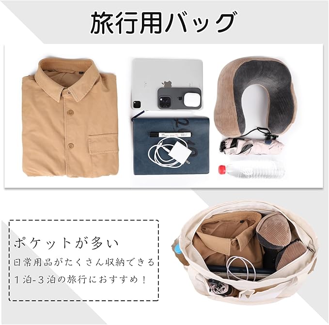 [imeetu] トートバッグ マザーズバッグ キャンバス トート レディース メンズ 肩掛けバッグ グローサリー 通学 帆布 大容量 多機能 無地 (Lサイズ)