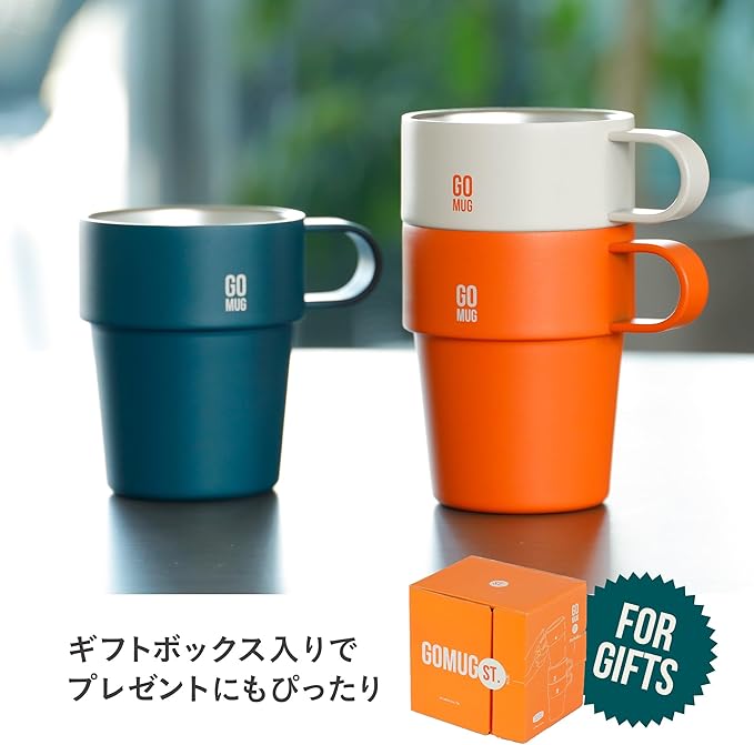 シービージャパン ステンレスマグ 真空断熱 2層構造 285ml オレンジ 取っ手付き スタッキングできる ゴーマグST. コンビニ コーヒーカップ GOMUG
