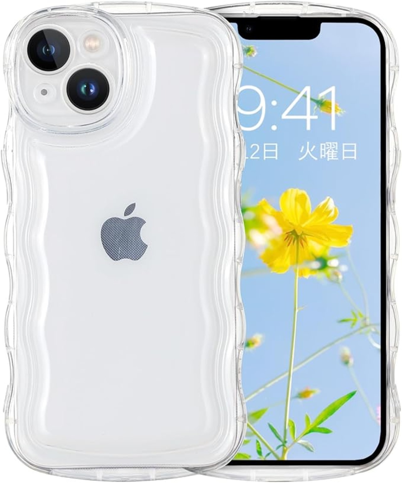 GUAGUA いphone 13mini ケース クリア ウェーブ iPhone13mini ソフト TPU 透明 ケース うねうね 人気 バンパー 耐衝撃 超軽量 薄型 ワイヤレス充電対応 ストラップホール付き アクスタが入る スマホケース 13mini 楕円形カメラ アイフォン 13ミニ なみなみ カバー(クリア 透明)