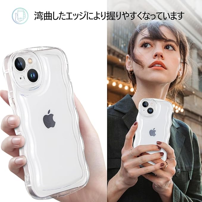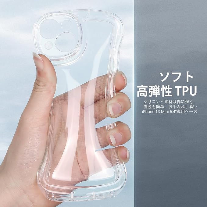 ♥【ウェーブ湾曲縁&TPU肌触り】湾曲したエッジにより握りやすくなっています。アイフォン iPhone13mini透明ケースは滑らかな液体シリコンゴムと柔らかいTPU製で、耐傷性、耐指紋性、耐衝撃性に優れ、取り外しも簡単,お手入れし易い。