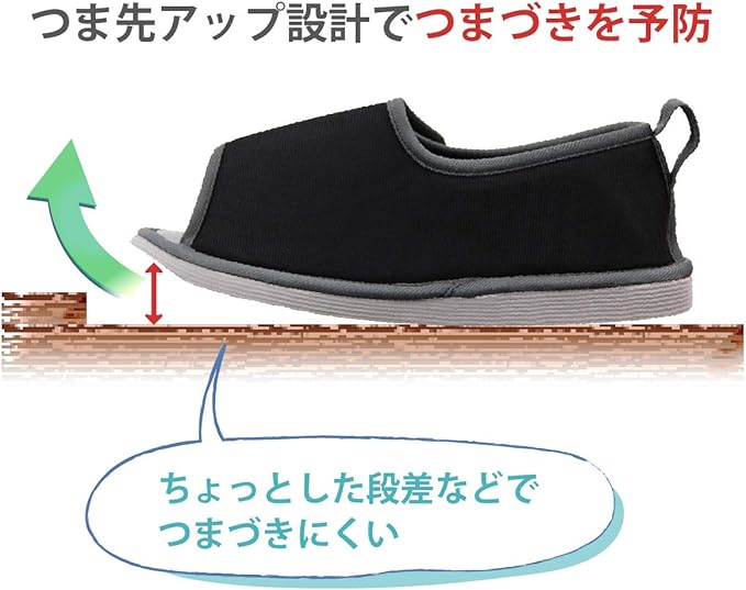 竹虎 転倒予防シューズ つま先なし ブラック 3Lサイズ