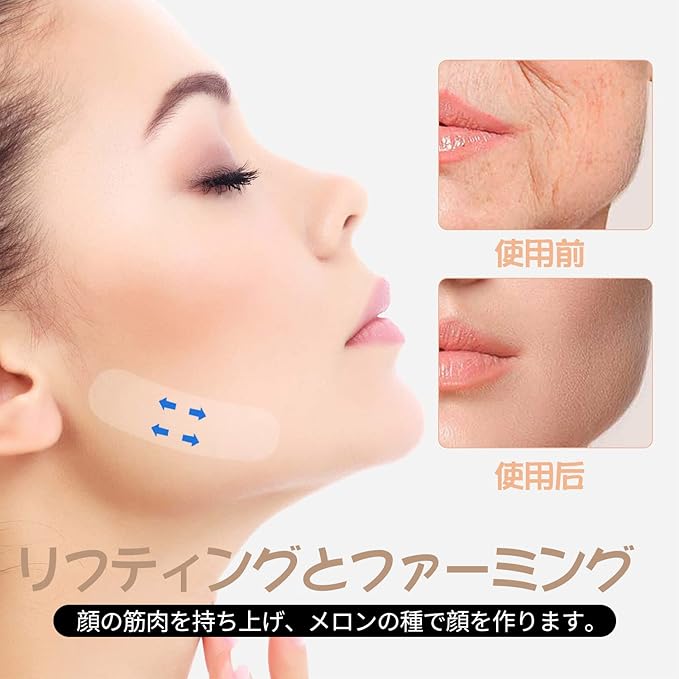【様々な場所に適用】フェイスラインシェイプ、たるみ改善、ほうれい線、シワなどの解消、顔の 筋肉の引き締めに役立っています。やわらかいストレッチ性テープでお肌にフィットし、しっかりキー プします。コスプレ、撮影会、就職活動、デードなどでも最適。今日は特別に、通常よりも可愛くたい とき、小顔になりたいと感じたときにもおすすめ!