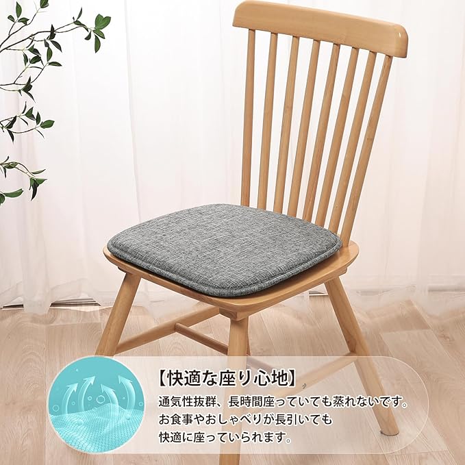 【蒸れない】通気性抜群、肌触りのよいカバー、熱を効果的に分散させます。夏に長時間座っても蒸れないです。お食事やおしゃべりが長引いても快適に座っていられます