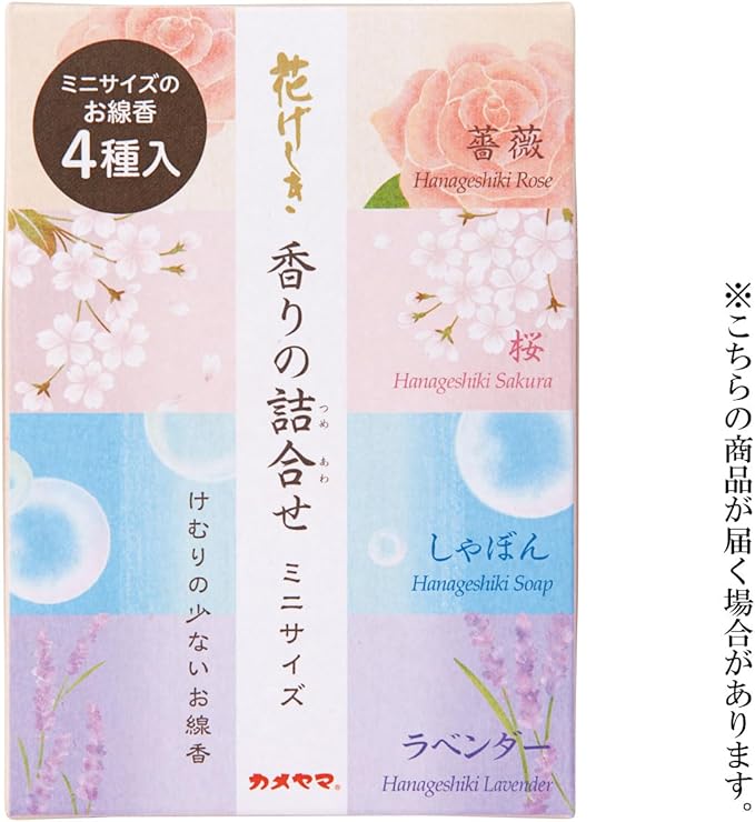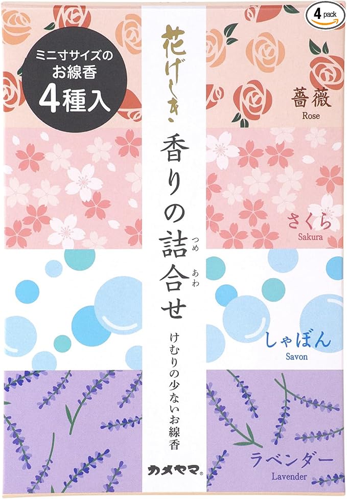 カメヤマ 花げしき 香りの詰合せ ミニサイズ 約25g 4種入 約80本 4種入 ミニ寸 お線香 お香 煙少ない