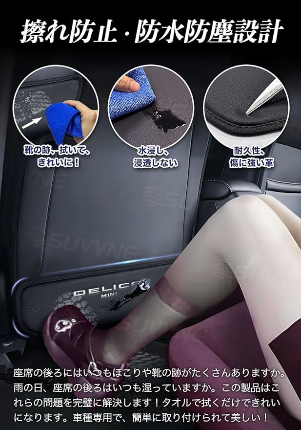 SUVVNE(スヴニ) キックガード 新型デリカミニB3系専用 (2023年5月-現行) バック キック マット 後部座席 プロテクター 汚れ防止 蹴り防止 内装パーツ 運転席/助手席対応 2枚セット