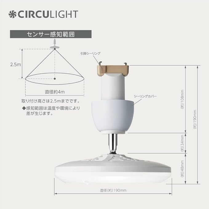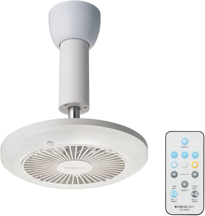 ドウシシャ サーキュライト ソケットシリーズ 引掛けモデル 調色 60W相当 人感センサー機能付き 風量3段階 リモコン付き ホワイト