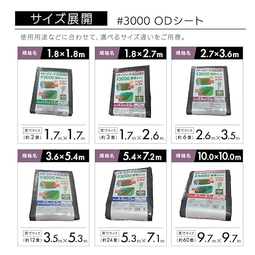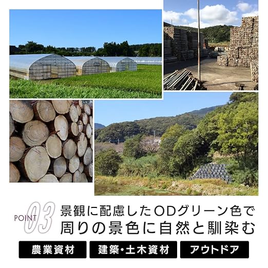 【特徴】厚手タイプのイメージシートです。屋外使用目安は約3年と長期に使用できます。景観に配慮したODグリーンのシートで、建築・土木・農業・水産他の野積み用カバーにも最適です。