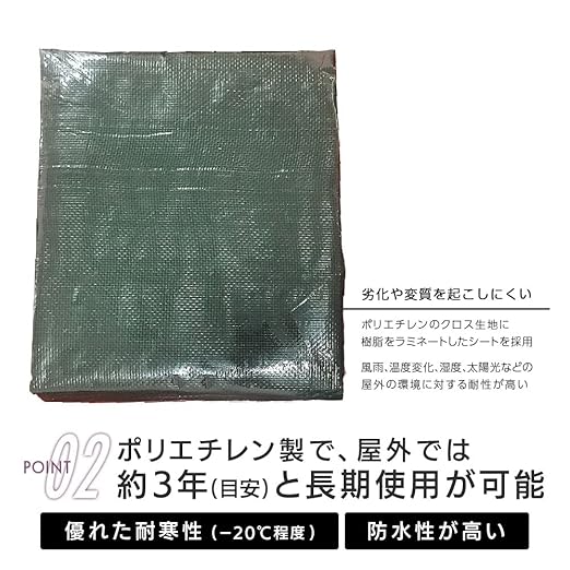 【仕様】本体サイズ:1.8 1.8m(呼称)、実寸サイズ:1.7m 1.7m(約2畳)/材質:ポリエチレン(本体)、アルミニウム(ハトメ)/ハトメ数:8ヵ所/ハトメ間隔:約90㎝/屋内仕様目安:約3年/カラー:ODグリーン
