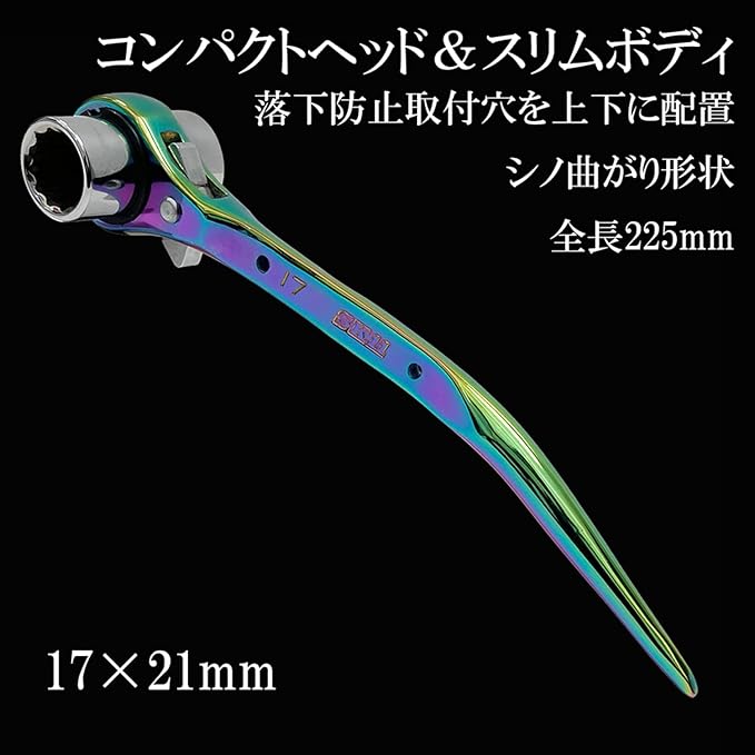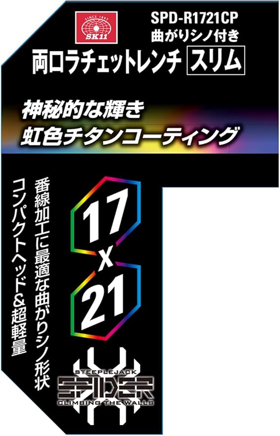 SK11(エスケー11) SPIDER 両口ラチェットレンチ スリム 曲がりシノ付き レインボー 17 21mm SPD-R1721CP